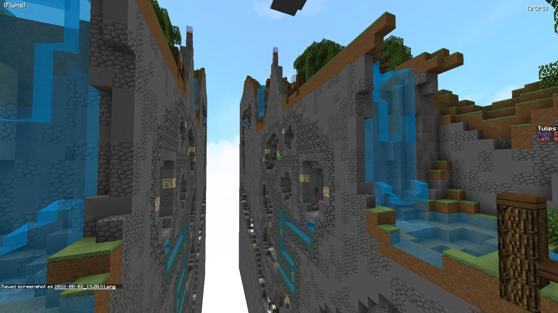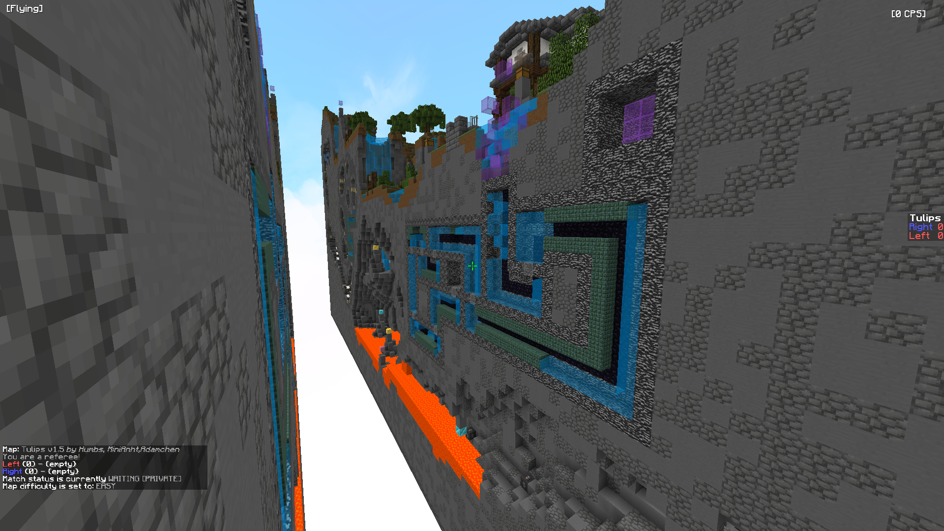 Tulips is a map first concepted a year ago where my goal was to create a rfw map. It features two pve wools and a pvp wool. First wool starts as a pvp section, once you select the button at the end of the pvp, the pve section unlocks. 2nd wool requires you to press the command block in the clouds in order to unlock the pvp wool entrance, once u finish the pvp section you must press a button to unlock the woolbox. Third wool is a standard PVE wool that wraps around a cave and waterfalls.
